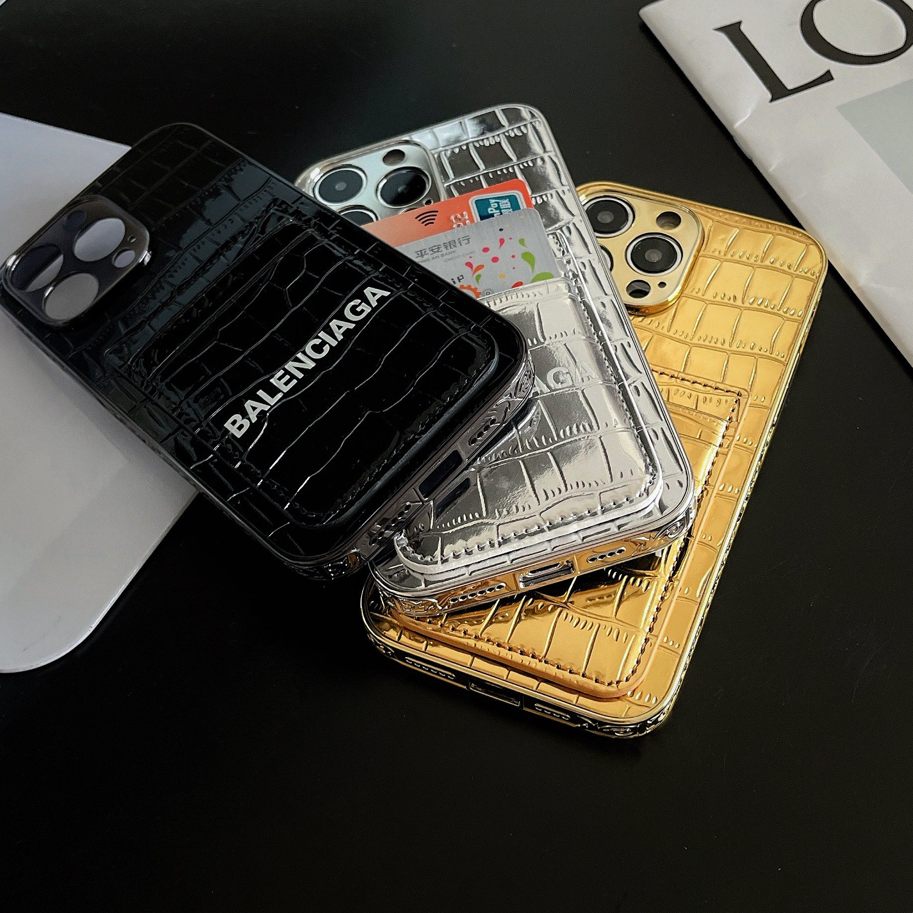 Balenciaga Faux Croc luxurious Leather iPhone Wallet Case
